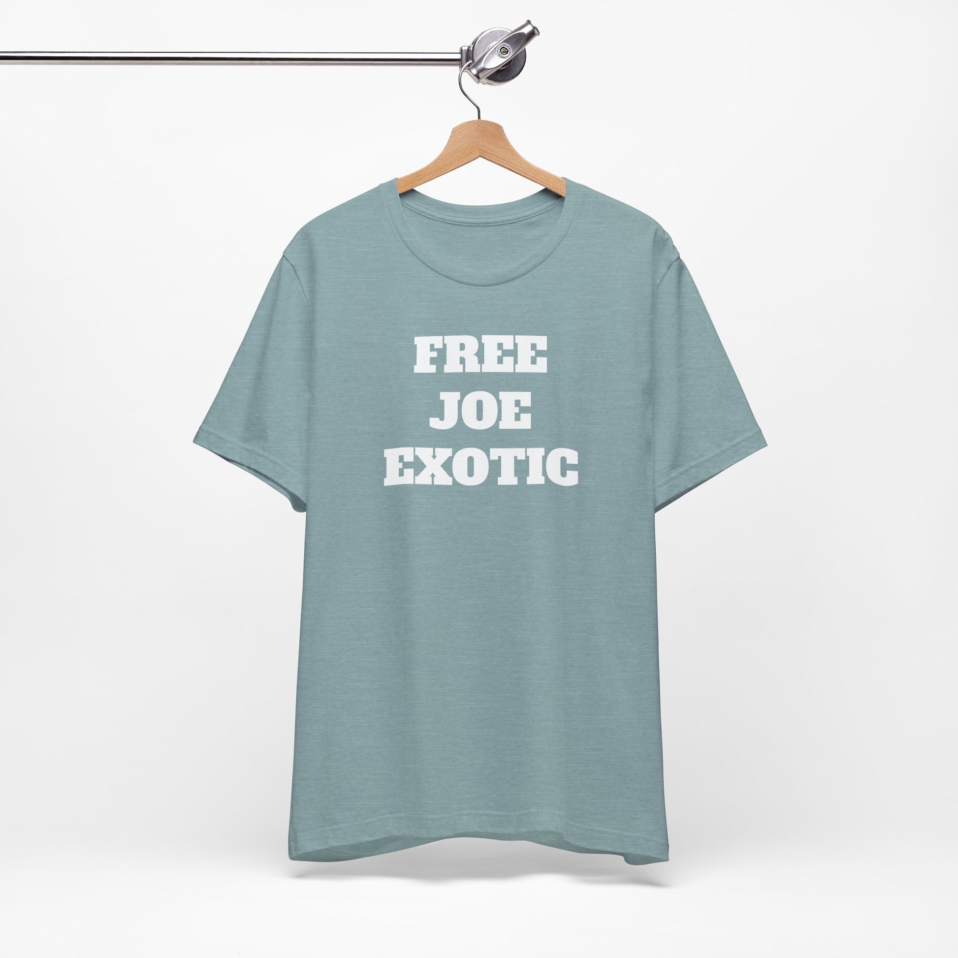 Free Joe Exotic! Back in stock! Get your official Free Joe Exotic Shirt. This shirt comes in sizes XS-4XL and you have a choice of color. Joe Exotic did not do anything wrong.