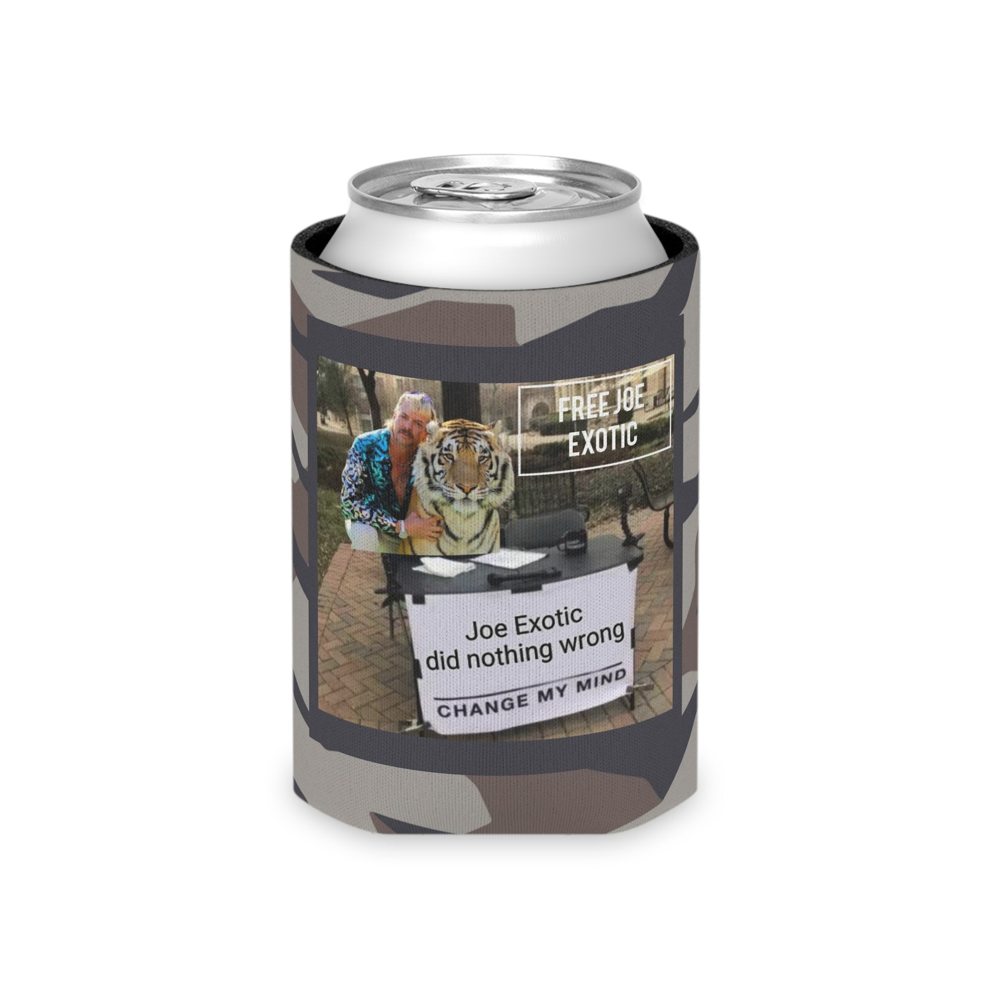 Tiger King Party Supply: Koozie with Camo and Joe Exotic Tiger King