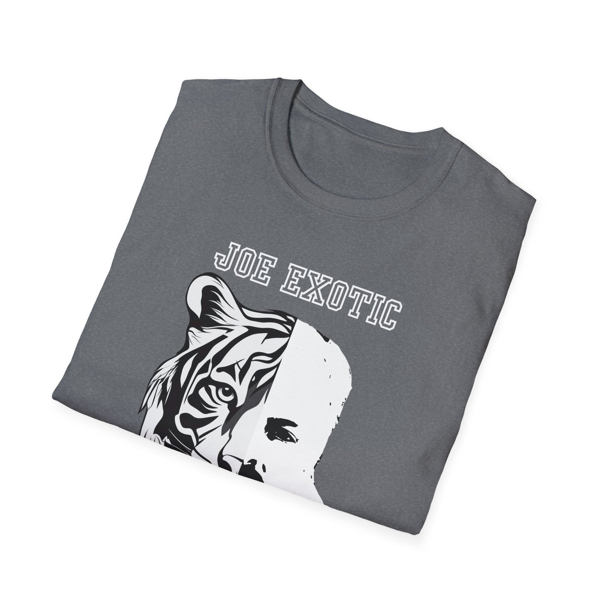 Featuring a striking black and white design, this shirt showcases a powerful image that blends the fierce spirit of Joe Exotic with the majestic presence of a tiger.